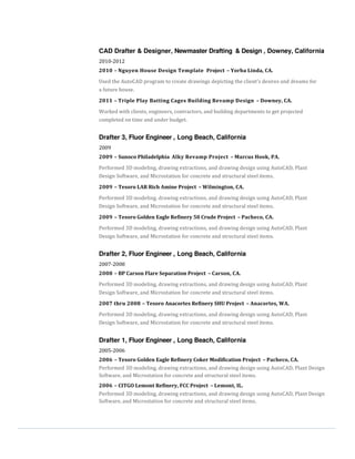 Josh Newmaster is a senior structural designer with over 15 years of experience in structural steel and reinforced concrete design. He has expertise in 3D modeling, drawing extractions, and design drawing preparation using various CAD software. He aims to produce high quality design work under budget and ahead of schedule for clients. Newmaster has worked on projects in industries such as hydrocarbons, petrochemicals, modular design, and arctic design.