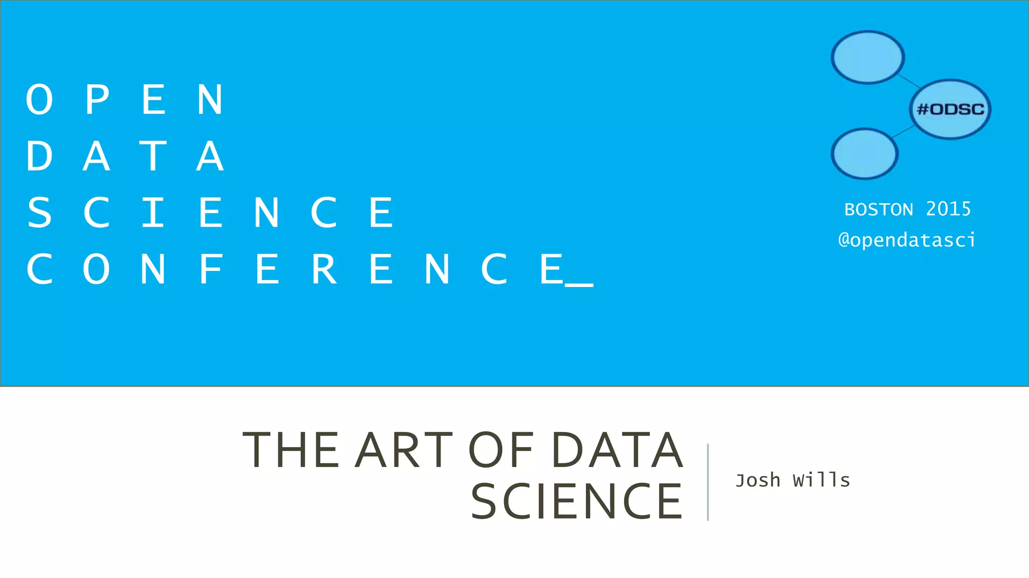 The document is a presentation by Josh Wills from Cloudera on data science. It discusses defining data science and the roles of data scientists. It also covers challenges working with big data, including data modeling and addressing the impedance mismatch between operational and analytical systems. The presentation promotes open data science and sharing examples on GitHub to push beyond the limits of current tools.