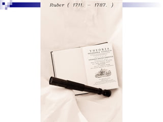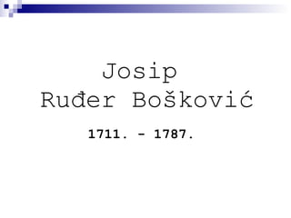 Ruđer Bošković (1711. - 1787.) bio je svestrani znanstvenik, profesor i isusovac poznat po svojim doprinosima u matematici, astronomiji i geodetskim istraživanjima. Tijekom svoje karijere surađivao je s brojnim institucijama i ukazivao na inženjerske i znanstvene inovacije, uključujući priručnik za mornare i razvoj modela atoma. Umro je u Milanu, a njegova ostavština uključuje značajne doprinose znanosti i geodeziji te poštovanje koje su mu ukazivali u Dubrovniku nakon smrti.