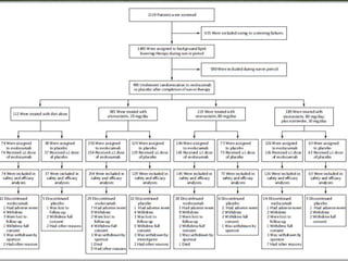 This phase 3 clinical trial evaluated the safety and efficacy of evolocumab, a monoclonal antibody that inhibits PCSK9, in over 900 patients with hyperlipidemia over 52 weeks. Patients received evolocumab or placebo injections monthly in addition to background lipid-lowering therapy. The primary outcome was the percent change in LDL cholesterol from baseline to week 52. Evolocumab reduced LDL cholesterol by 57% on average compared to placebo and over 80% of patients achieved an LDL cholesterol level under 70 mg/dL. More adverse events occurred in the evolocumab group, including myalgia and elevated creatine kinase. The study demonstrated evolocumab significantly lowered LDL cholesterol over 52 weeks when added to standard lipid-lower