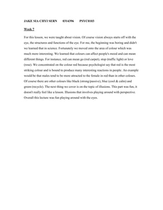 4) In the third week, the class learned about vision and color psychology, with a focus on the effects of the color red. The student found the section on illusions to be fun.