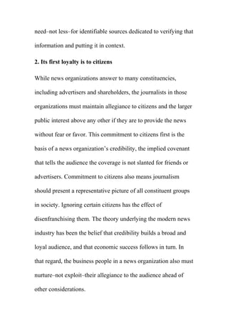 The document outlines 9 core principles of journalism:
