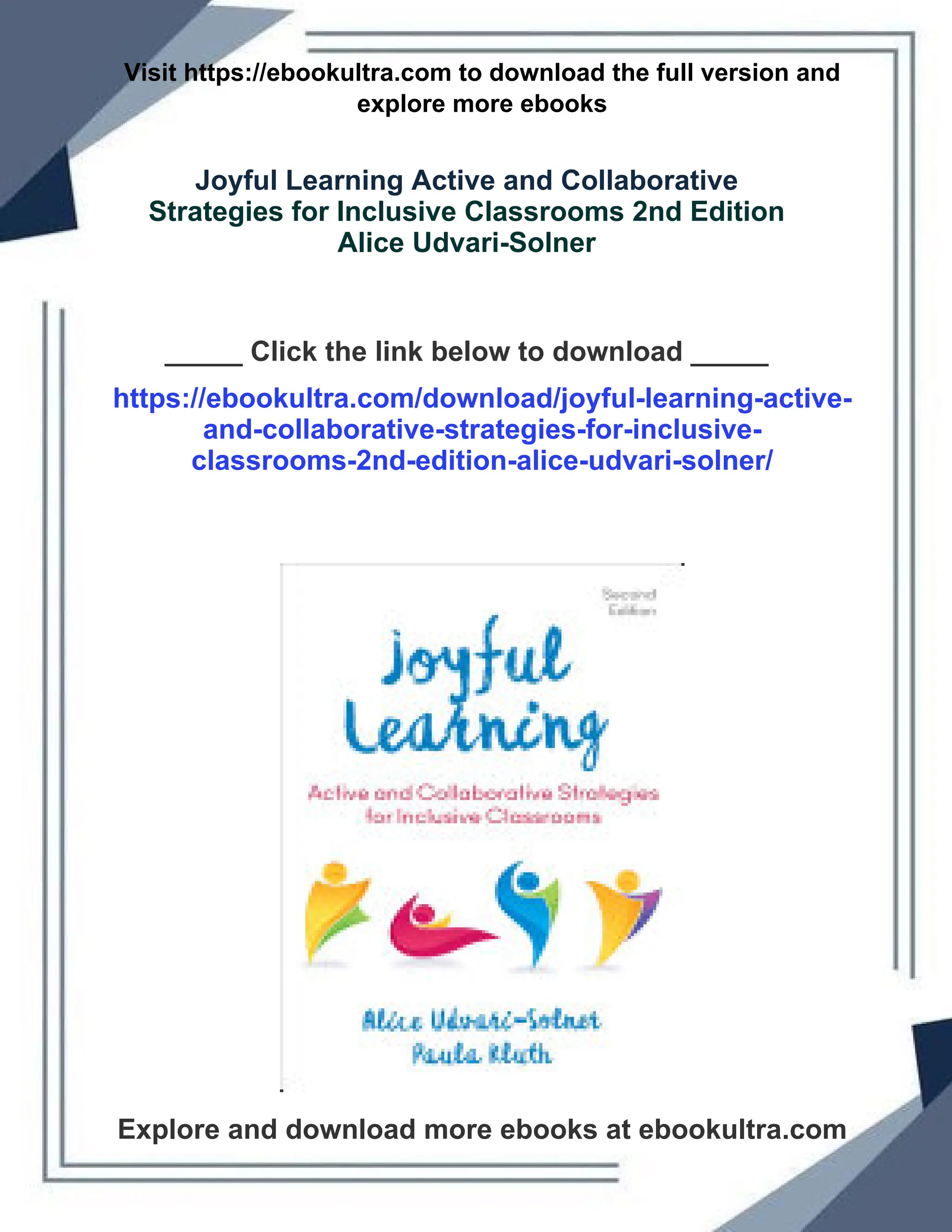 Joyful Learning Active and Collaborative Strategies for Inclusive Classrooms 2nd Edition Alice Udvari-Solner