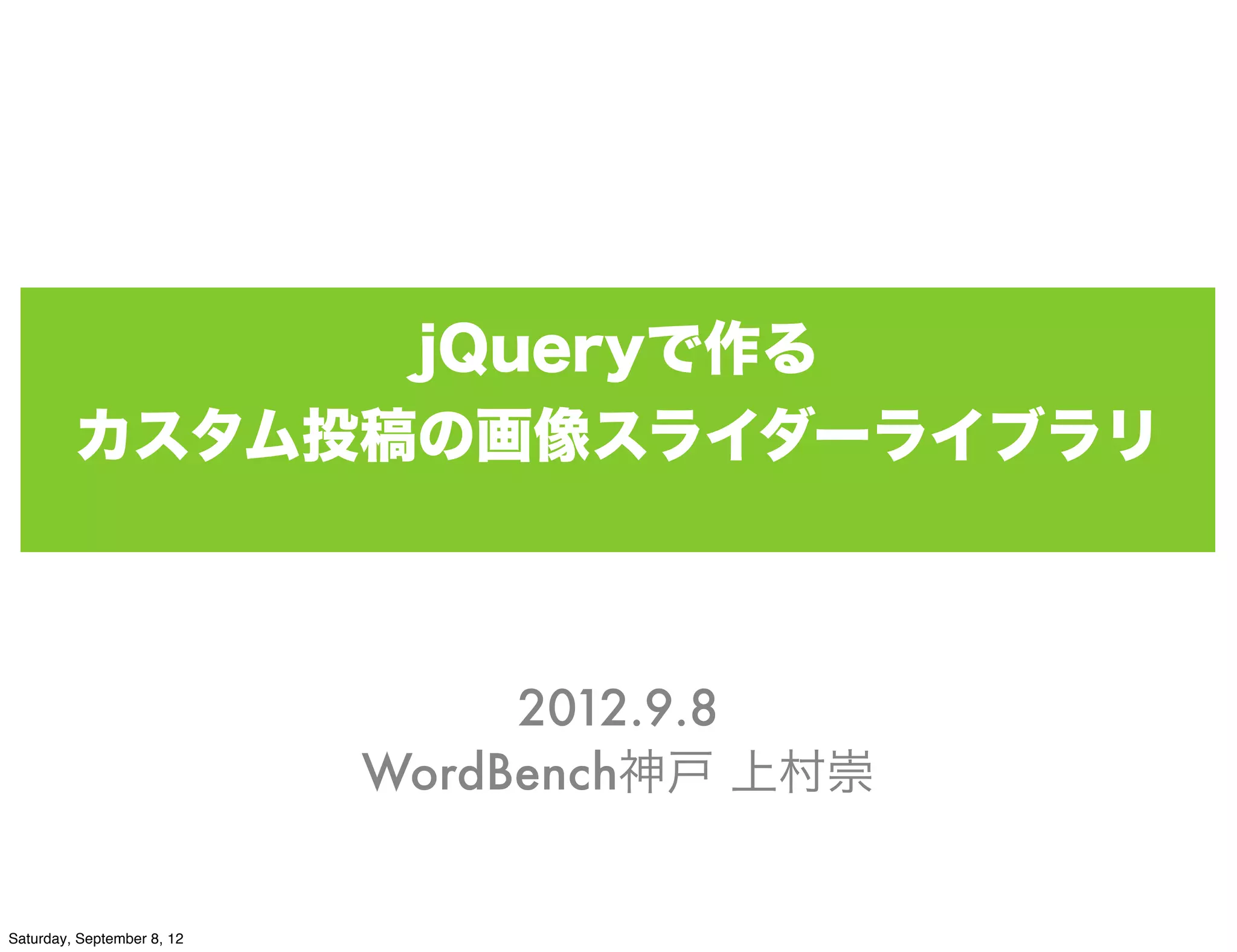 jQueryを使って、画像スライダを作ることができますが、そこで表示する何枚かの画像を、WordPressの投稿機能を使って追加したり変更したりできると便利ですよね。 カスタム投稿タイプとjQueryを使って「動的に画像を差し替えられるスライダー」を実装する方法を紹介します。