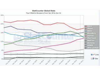 jQuery Mobile aims to fill the gap in mobile web development by providing a framework that works across all major mobile platforms and browsers without sacrificing the user experience. It is a two-phase project: phase one focuses on making jQuery core functionality work across all popular mobile browsers through testing and bug fixes; phase two introduces jQuery Mobile, a framework for building mobile websites and applications with widgets, layouts, and a progressive enhancement approach to ensure broad compatibility.