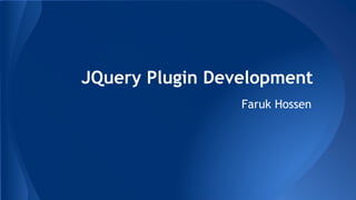 JQuery is a JavaScript library that allows developers to easily manipulate HTML, CSS, and events. A JQuery plugin extends JQuery's functionality by adding new methods to its prototype object. Plugins provide reusable code and save development time. A plugin consists of a function, options, callbacks, and the ability to chain methods. The 'this' keyword refers to DOM elements or JQuery objects depending on the context.