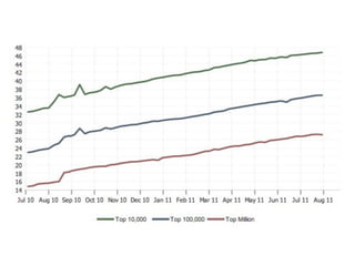 This document discusses jQuery and web standards. It summarizes jQuery's goal of hiding browser compatibility issues while providing a simple API. It also discusses jQuery's success competing with other JavaScript libraries. The document outlines several specifications that are important to jQuery, with the DOM being the most significant. It then lists several standards and features that jQuery has used successfully. The majority of the document proposes additional standards and browser features that would be useful for jQuery and JavaScript libraries going forward, including better DOM manipulation APIs and event handling capabilities.