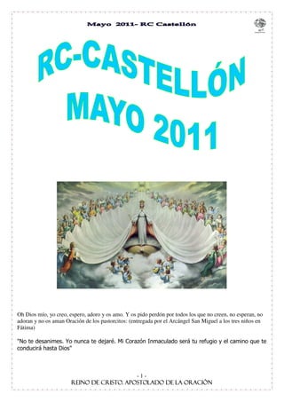 yo creo, espero, adoro y os amo. Y os pido perdón por todos los que no creen, no esperan, no adoran y no os aman Oración de los pastorcitos: (entregada por el Arcángel San Miguel a los tres niños en Fátima) -1-