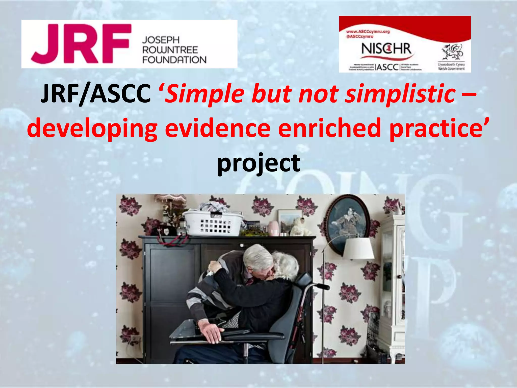 This document outlines a project between JRF/ASCC aimed at developing evidence-enriched practice in care services. It involves four strands of work including improving care homes and housing with care. The goal is to use evidence from research, practitioner experience, organizational knowledge, and service users to make improvements that enhance quality of life. The project will involve several agencies and local authorities in an action learning program to test using evidence to guide practice changes. It will examine how practitioners and organizations use evidence and identify enablers and barriers to applying research in practice.
