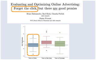 This document discusses common limitations that arise when working with large datasets, or "big data". It outlines four main limitations: 1) Measuring the wrong thing if the available data does not directly measure the variable of interest. 2) Biased samples if the data is not representative of the target population. 3) Dependence if observations are not independent due to repeated measurements. 4) Uncommon support if qualifying cases that satisfy criteria like matching are rare in the data. For each limitation, common patterns are described and opportunities for addressing the issues through better measurement, modeling, or experimental design are presented. The conclusion emphasizes that generating high quality data is better than relying on convenience data alone, and there are research opportunities in overcoming limitations