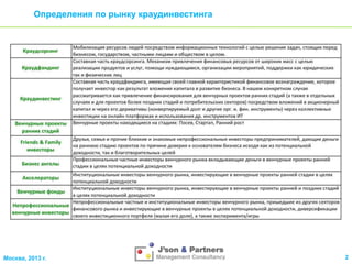 Документ анализирует потенциал развития рынка краудинвестинга в России, освещая его цели и преимущества для инвесторов и предпринимателей. Он подчеркивает текущую ситуацию и структуру рынка, а также предлагает идеи по снижению ограничений для его роста. Прогнозируется, что российский рынок краудинвестинга может достичь до $0,5 млрд в перспективе, хотя на данный момент сталкивается с рядом вызовов.