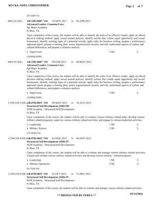 Rucks has completed several military courses and held various roles in the army. He has served as an armor crewman, motor transport operator, heavy wheel vehicle mechanic, and infantryman over his career. His transcript shows courses in subjects like marksmanship, military science, supervision, and leadership.
