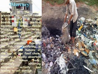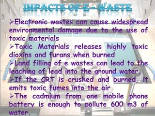 1) Incineration reduces waste volume by burning e-waste at high temperatures, but releases hazardous emissions like cadmium and mercury.