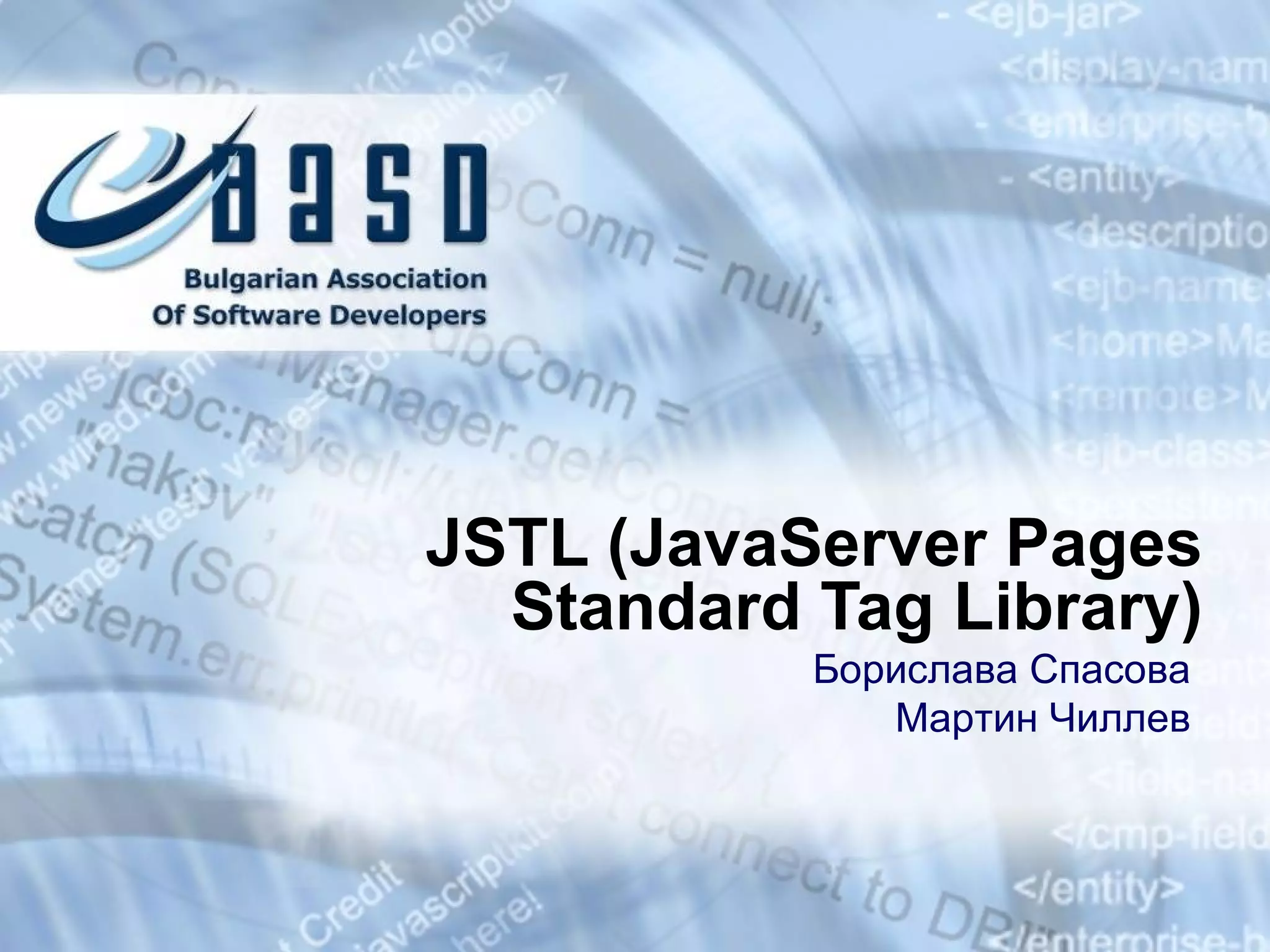 JSTL (JavaServer PagesStandard Tag Library) Стандартната библиотека с тагове в JSP стандарта
