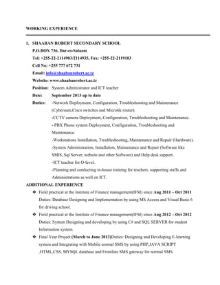 Juma Bakari is a Tanzanian male born on December 5, 1988, with a Bachelor’s degree in Computer Science and experience as a system administrator and ICT teacher. He has expertise in network deployment, system administration, and various programming languages and software, showcasing a strong commitment to personal and organizational development. Bakari has strong language skills in both Swahili and English, with additional practical experience in database design and e-learning systems.