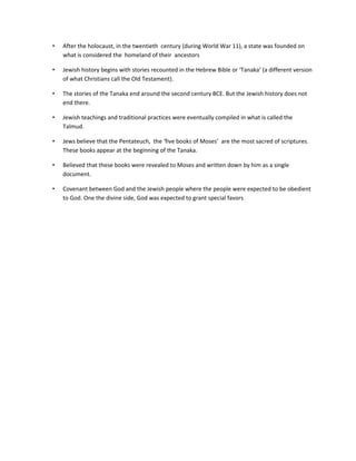Judaism is associated with the Jewish people, who can be described as both an ethnic or religious group. Throughout Jewish literature, the Jewish people are referred to as "the Children of Israel," implying a shared lineage and descent from the patriarch Jacob, also known as Israel. As a nation, Israel refers to those who acknowledge and obey the one God through the Torah and teachings of the patriarchs and prophets like Moses. Historically, Jews have been a nomadic people, but in the 20th century a state was founded in what is considered the ancestral homeland after the Holocaust.