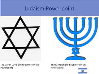 This PowerPoint document provides an overview of key aspects of Judaism, including: