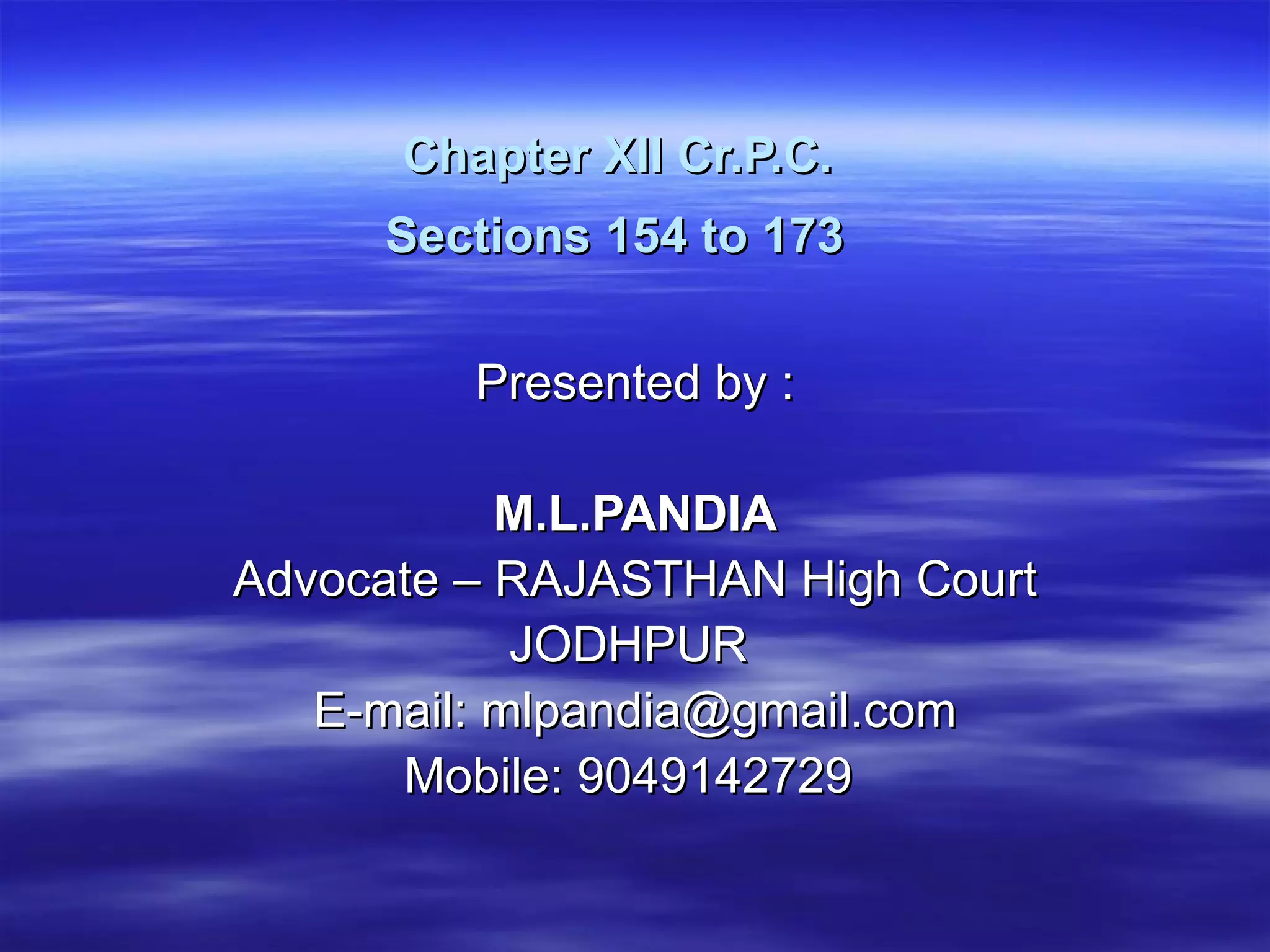The document summarizes the process for filing a First Information Report (FIR) under Section 154 of the Code of Criminal Procedure (CrPC). It outlines what details should be included in the FIR, such as the name and address of the complainant, details of the crime, description of the accused, witnesses, etc. It also discusses the duties of the police in registering the FIR and investigating the crime. The document uses an example case to illustrate how the police machinery can sometimes be misused in civil disputes.