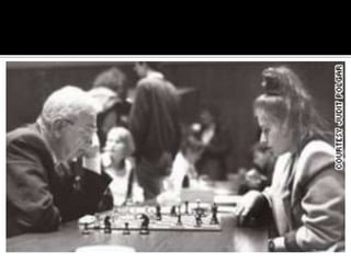 Judit Polgar is considered the strongest female chess player in history. She was born in Budapest, Hungary in 1976 and showed early talent, winning her first tournament at age 9. She earned the title of International Master at age 11 and Grandmaster at age 15, making her the youngest person ever to achieve that title. Polgar has consistently been ranked among the top 100 chess players in the world, both male and female. She has demonstrated that with dedication and hard work, women can compete equally with men in chess and other fields traditionally dominated by men.