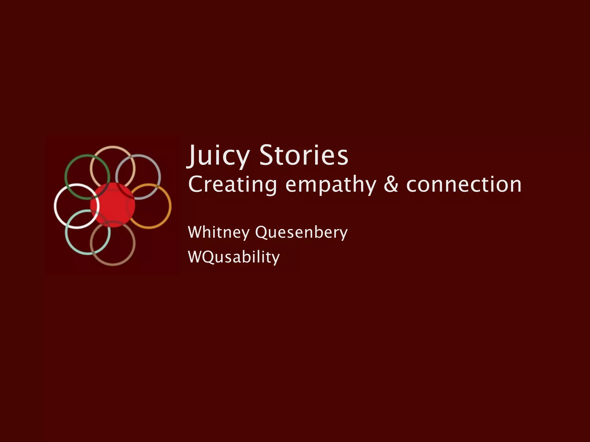 1) The document discusses how storytelling is an important part of creating empathy and connection in user experience design.