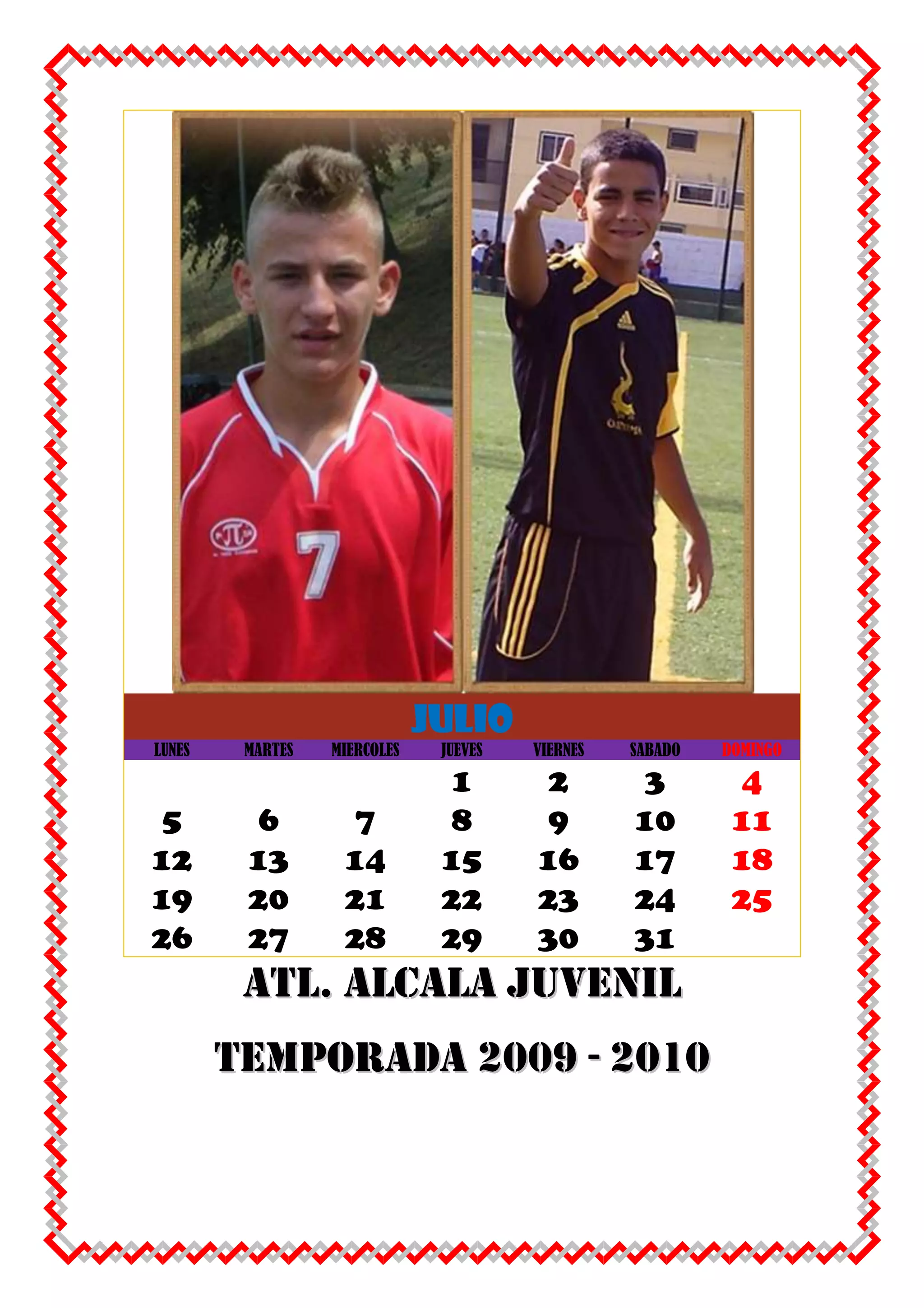 This Spanish document appears to be a calendar listing the days of the week and dates from 1-31. It also includes the words "ATL. ALCALA JUVENILTEMPORADA 2009 - 2010" which suggests it is a schedule or calendar for a youth sports team called Atl. Alcala for the 2009-2010 season.