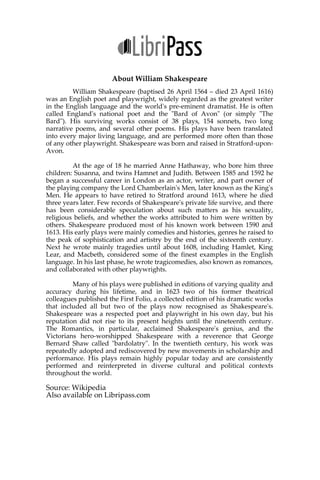 This document is a version of William Shakespeare's play 'Julius Caesar,' which includes character listings and descriptions as well as an introduction to Shakespeare itself, detailing his life, works, and impact on literature. The plot revolves around the political dynamics in Rome surrounding the character of Julius Caesar and the conspirators who plan his assassination. Shakespeare's works, including 'Julius Caesar,' have been translated and performed globally, making him one of the most significant playwrights in history.