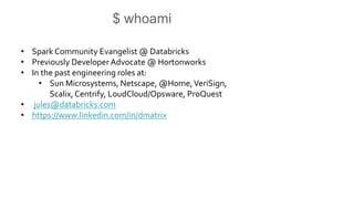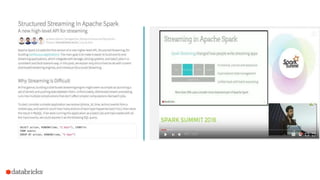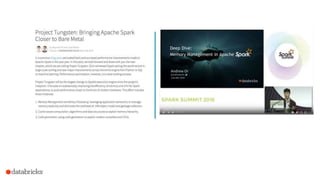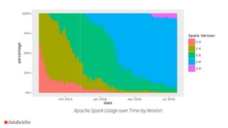 The document provides an overview of Apache Spark 2.0 on Databricks, detailing its architecture, major new features, and improvements such as unified APIs and structured streaming capabilities. It emphasizes the role of Databricks in simplifying big data processing and introduces participants to various functionalities and workshops focused on Spark's dataframes, datasets, and performance optimizations through Project Tungsten. The presentation includes practical sessions to familiarize users with structured streaming and batch processing using Spark SQL.