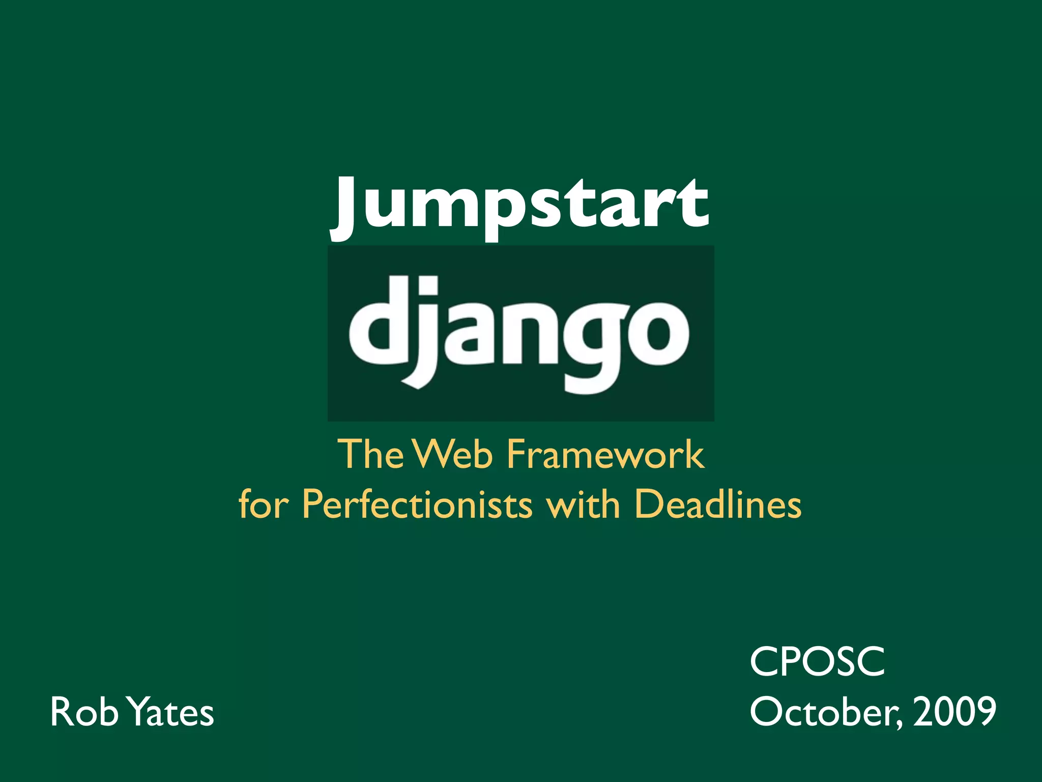 Django is a powerful web application development framework written in Python, designed for perfectionists with deadlines. It emphasizes rapid development, clean design, and includes features like an admin interface, ORM, and templating system, making it highly versatile and reusable. The framework also supports internationalization and various database backends, positioning itself as a strong alternative to other frameworks like Ruby on Rails.