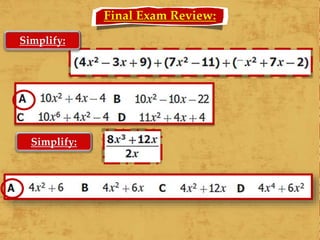 Today's tasks include preparing for the final exam, completing classwork and notebooks, and bringing a calculator to class tomorrow since phones cannot be used. The warm-up section of the notebook covers simplifying expressions, reviewing for the final exam, and solving a radical equation. The last warm-up question asks students to solve the equation 5x + 1 - 3x - 5 = 2 by squaring both sides, distributing, factoring, and solving for x to get the solutions of x = 3 or x = 7.