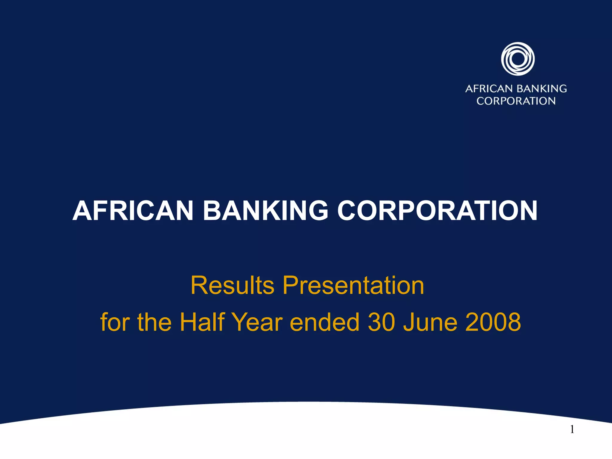The document summarizes the financial performance of African Banking Corporation for the first half of 2008. Key points include: