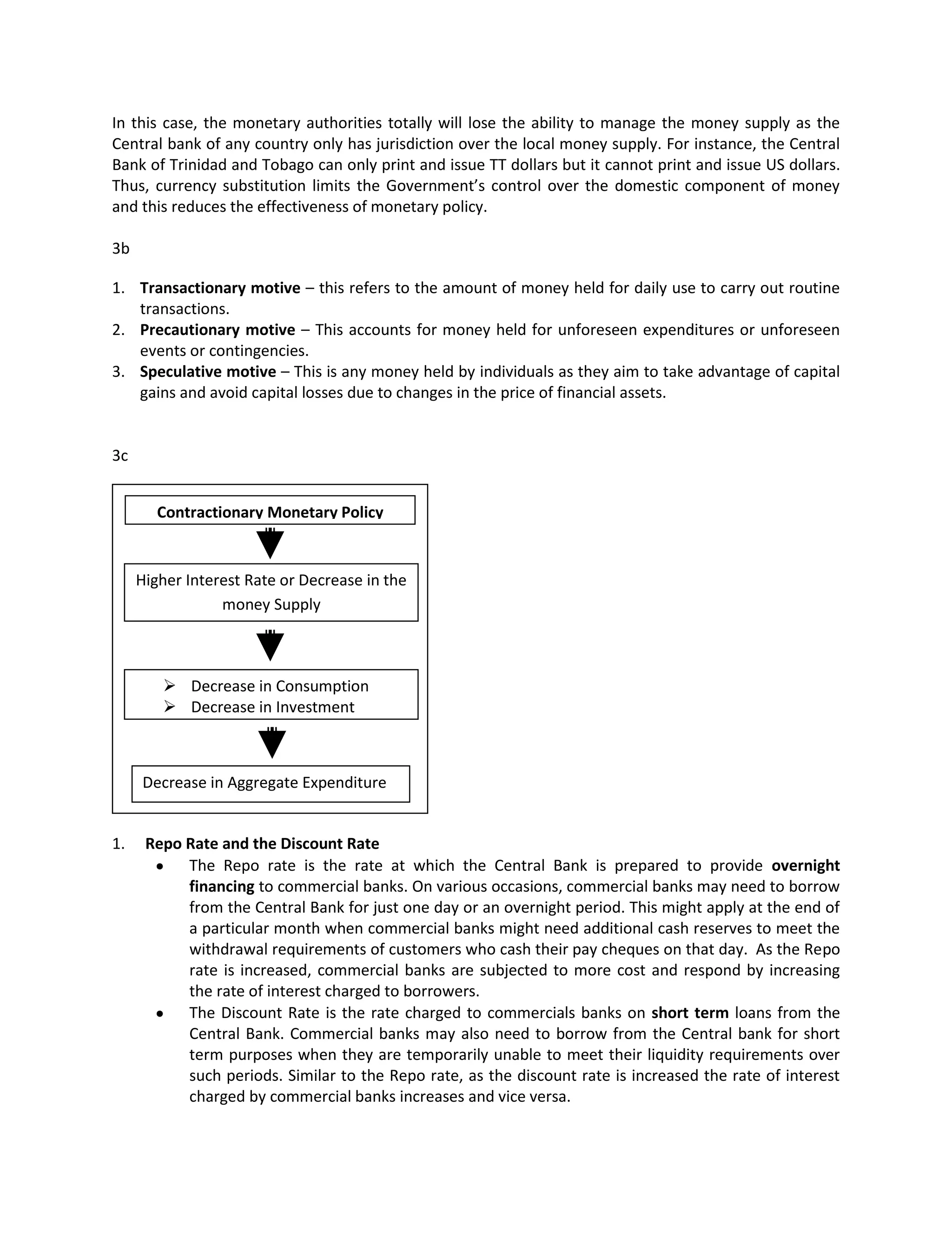 The document discusses various aspects of monetary policy and monetary aggregates. It defines narrow money (M1) as comprising currency in circulation and demand deposits, while broad money (M2) includes M1 plus long-term deposits and other savings accounts. It describes the monetary transmission mechanism by which an increase in the money supply leads to a fall in interest rates and rise in output and employment. It also discusses currency substitution, the motives for holding money, and various monetary policy tools used by central banks.