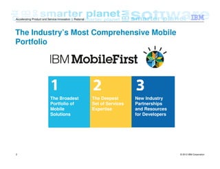 This document discusses IBM's mobile development offerings, including IBM Worklight. Some key points: