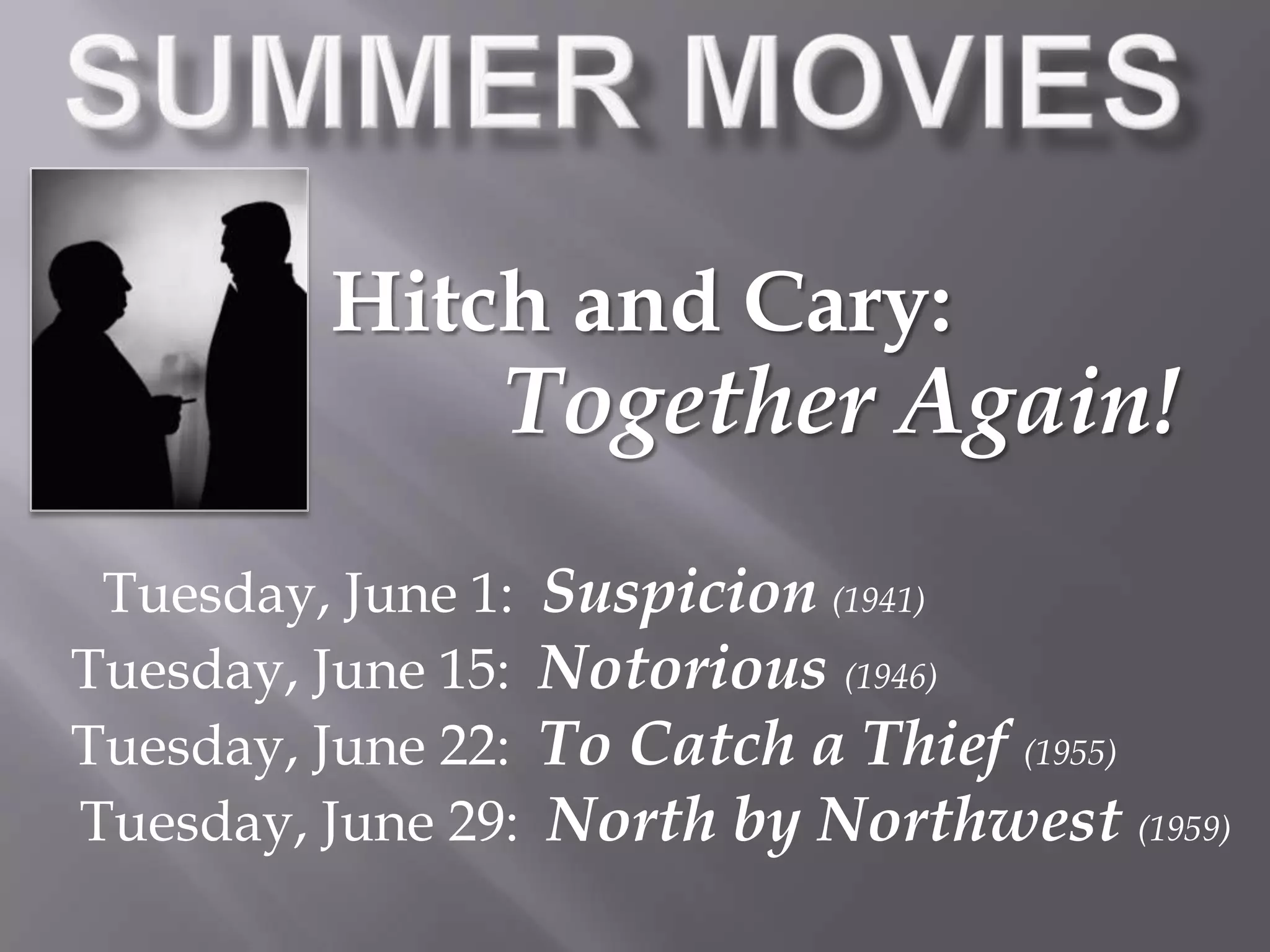 The document announces various events taking place at a library in June, including movie screenings, concerts, book discussions, art exhibits, and more. A series of Hitchcock films will be shown on Tuesdays. Other events include a piano and vocal concert, a science fiction book and movie discussion, a talk on adoption, a health program on heart health, an art exhibit by a father-daughter artist duo, outdoor concerts, a family movie night, book club meetings, a youth chorus performance, an environmental presentation, a play festival, a poetry reading, and a music open mic.