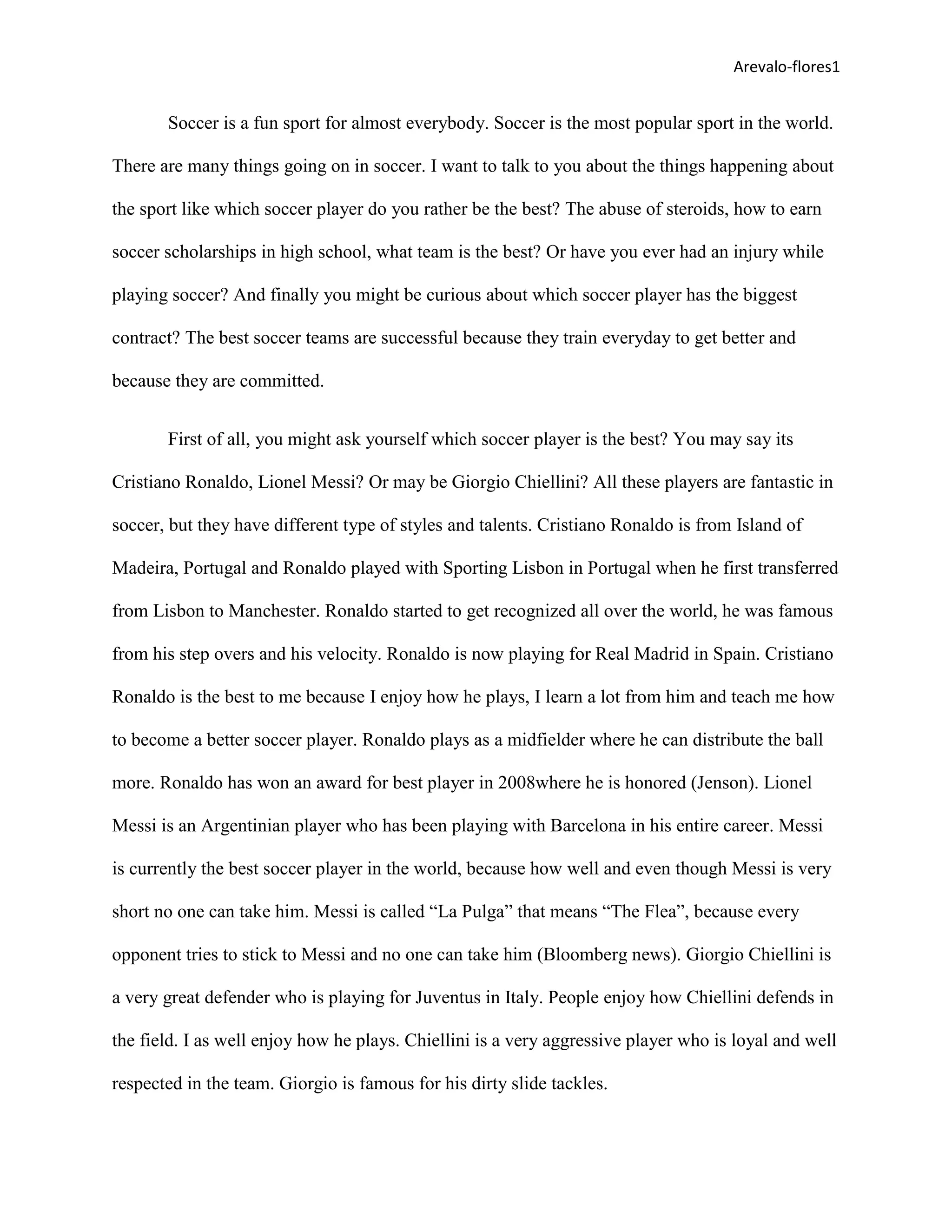 - It asks who the best soccer players are, mentioning Cristiano Ronaldo, Lionel Messi, and Giorgio Chiellini.