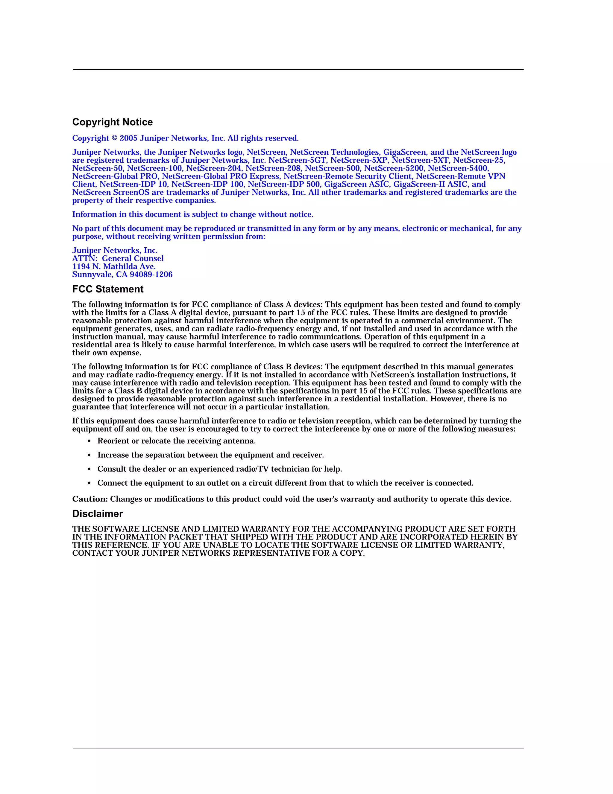The NetScreen-25 device comes with accessories for mounting in a standard 19-inch equipment rack. When installing the device in a rack, adequate ventilation is important to prevent overheating. Guidelines include ensuring the rack frame does not block intake/exhaust ports and higher equipment does not draw heat from lower devices. Proper rack installation is crucial for system operation.
