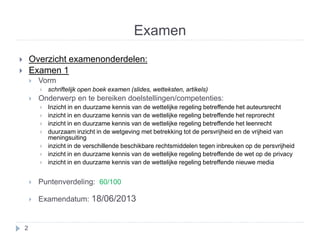 schriftelijk open boek examen (slides, wetteksten, artikels)