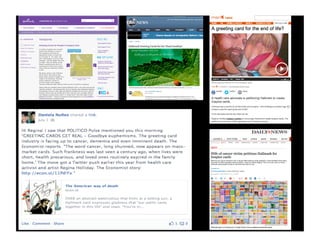 This document appears to be a presentation by Regina Holliday about making the case for patient access to their own medical data. It discusses her personal experience when her husband Fred fell ill and passed away, and the difficulties she faced trying to access his medical records and information from the hospitals. It also talks about her advocacy work since then to promote open access to patient health data through painting murals, using social media, and founding the Walking Gallery project.