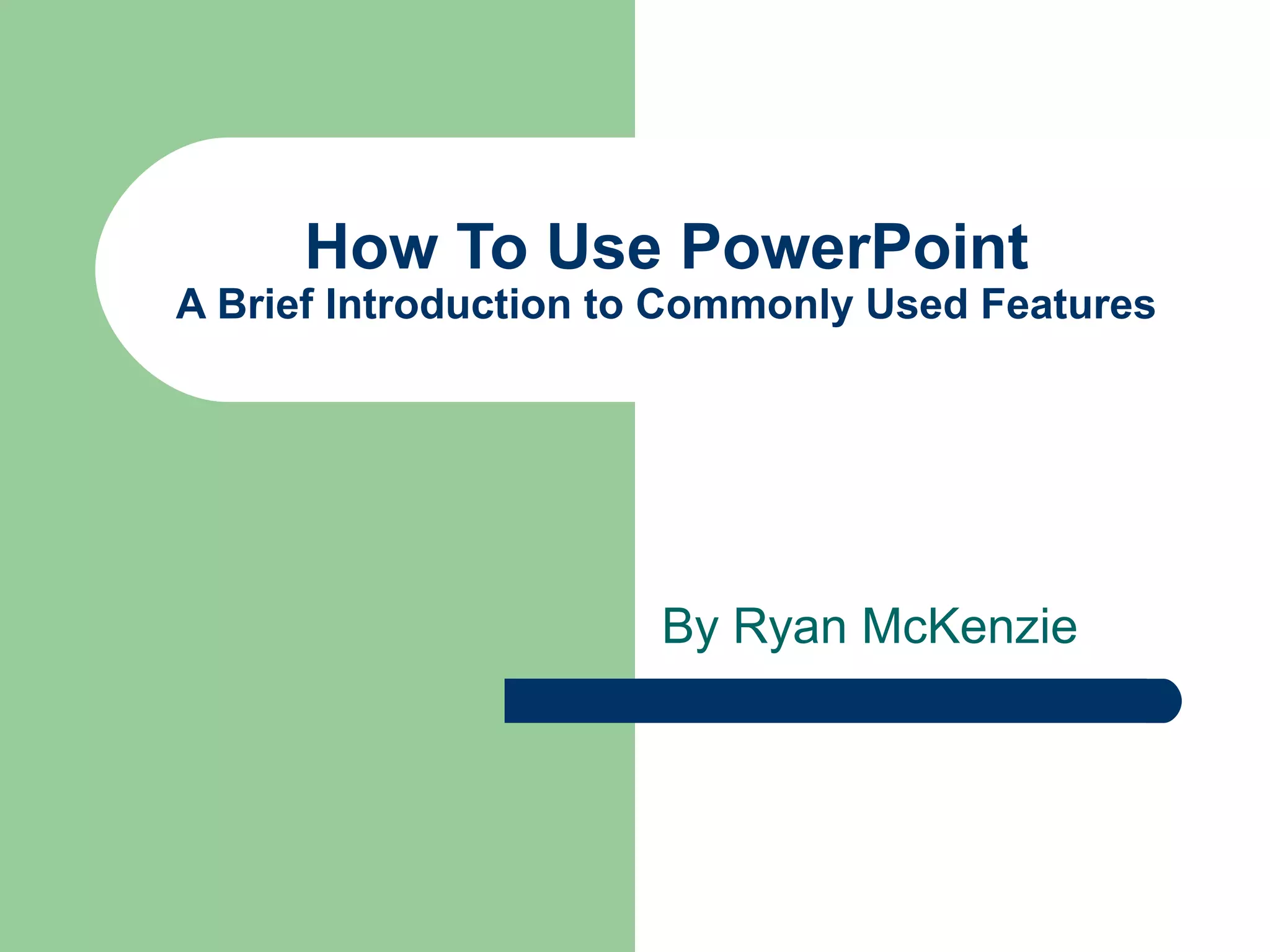 How To UsePowerPoint A Brief Introduction to Commonly Used Features By Ryan McKenzie