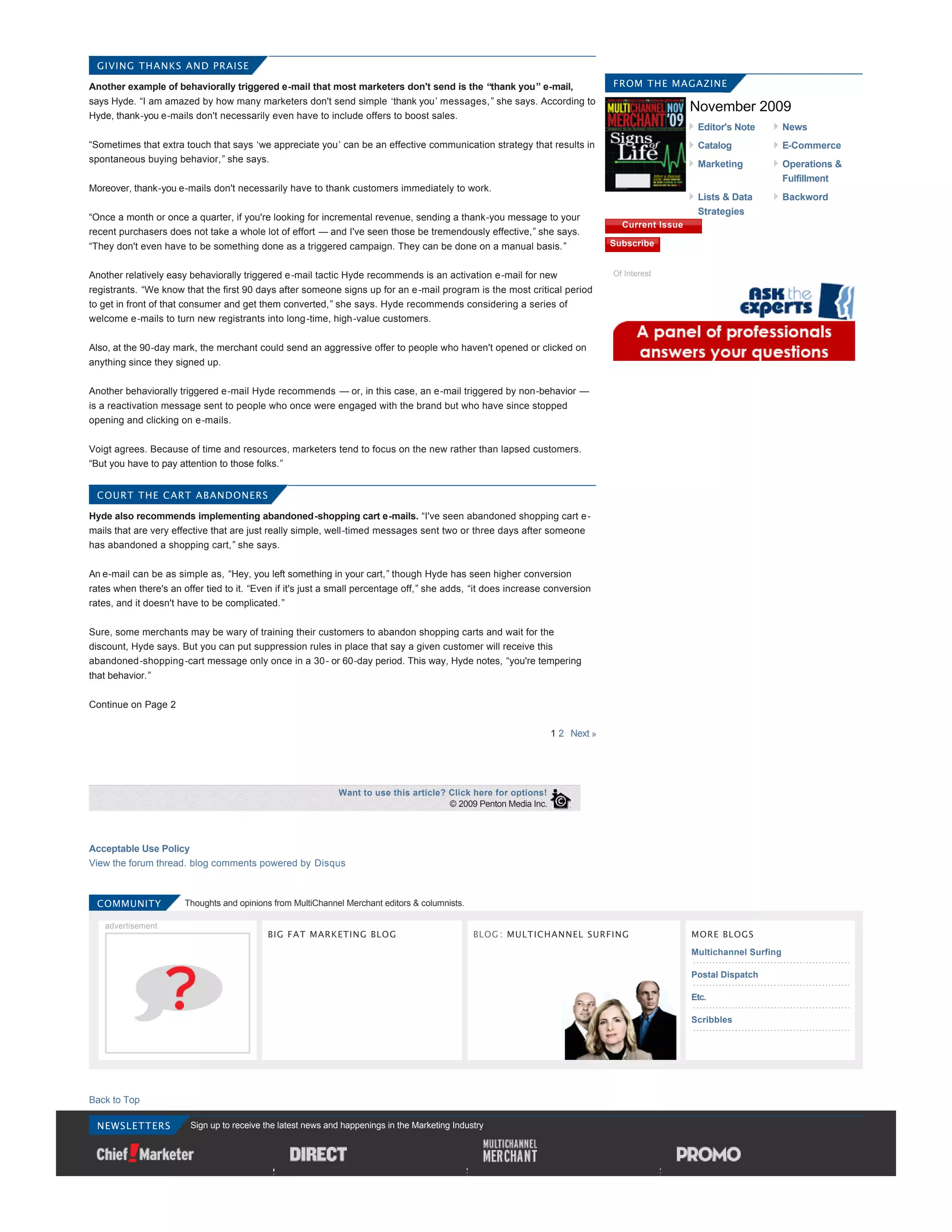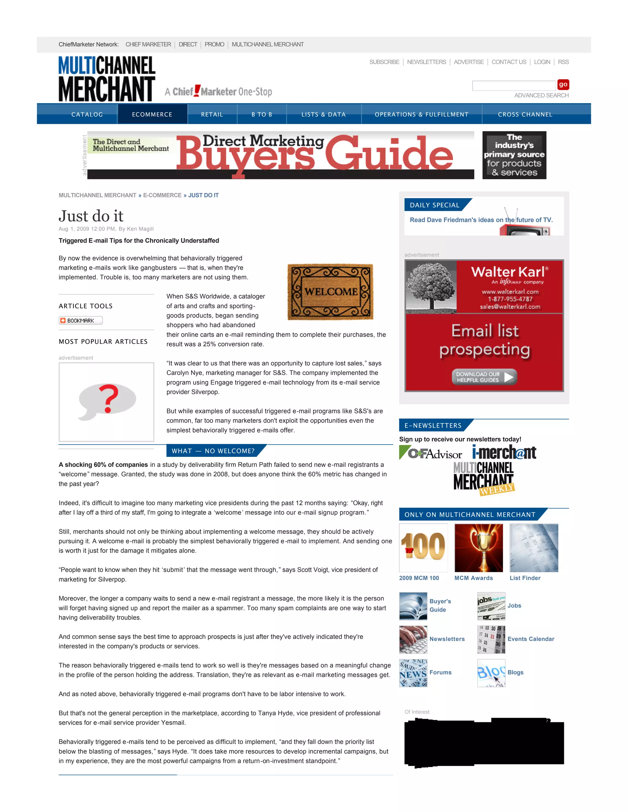 This article discusses the benefits of behaviorally triggered emails and provides examples of common types that are underutilized by marketers. It notes that welcome emails, thank you emails, and abandoned cart emails have high conversion rates but are not widely implemented. Implementing simple triggered emails like these requires few resources but can significantly boost sales and customer engagement.