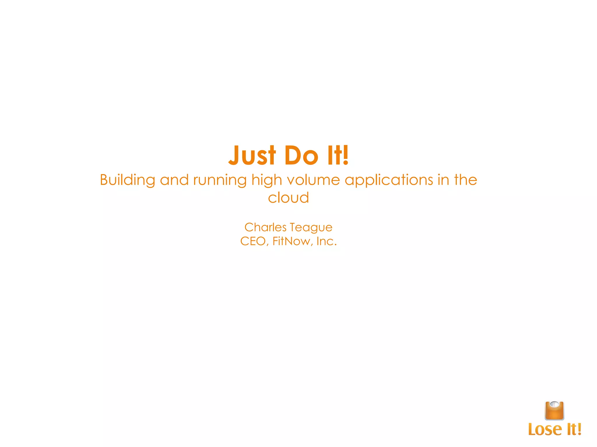 The document discusses how 'Lose It!', a calorie tracking application, utilizes cloud technology to support its rapid user growth and scalability despite limited resources. It emphasizes leveraging Platform as a Service (PaaS) for simplified deployment, reduced operational overhead, and enhanced customer experience. The text also highlights the importance of carefully choosing cloud services and understanding the specific characteristics of the infrastructure to achieve reliable performance.