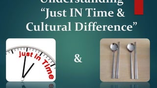 The document discusses Just-In-Time (JIT) manufacturing and its potential implementation in India and Bangladesh. It provides definitions and brief histories of JIT and cultural differences between India and Japan. Five cultural barriers to implementing JIT in India are listed as lack of top management commitment, lack of training, financial constraints, employee resistance, and poor facility planning. Five facts for how JIT/TQM could be implemented in India focus on competitiveness, efficiency, waste reduction, and productivity. Ten reasons are given for why JIT is possible in Bangladesh if the culture and management systems change.