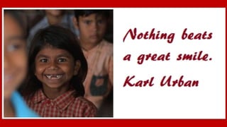 Smiles have the power to break down the cold walls of indifference and warm a lonely heart that's blue.
