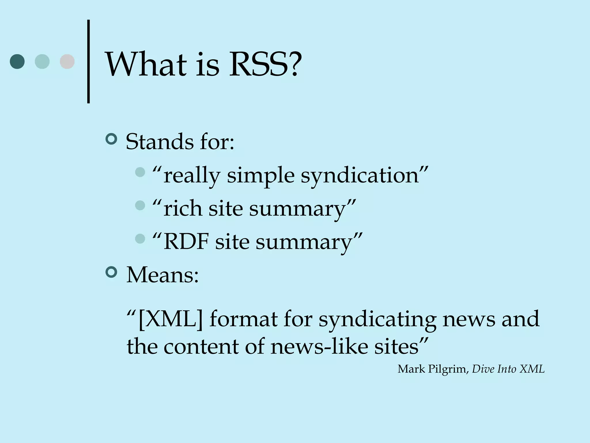 This document explains RSS (Really Simple Syndication), its definitions, versions, and applications within libraries. It highlights the advantages of using RSS for periodic web-based information and provides guidance on creating and finding RSS feeds. Additionally, it discusses various RSS aggregators for reading feeds and mentions potential future developments like Atom and portal integration.