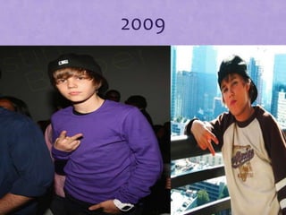 This document discusses pop star Justin Bieber, noting that from 2009 to 2011 he rose to fame and became well known and loved by many fans around the world, as he participated in popular fads and trends during those years.