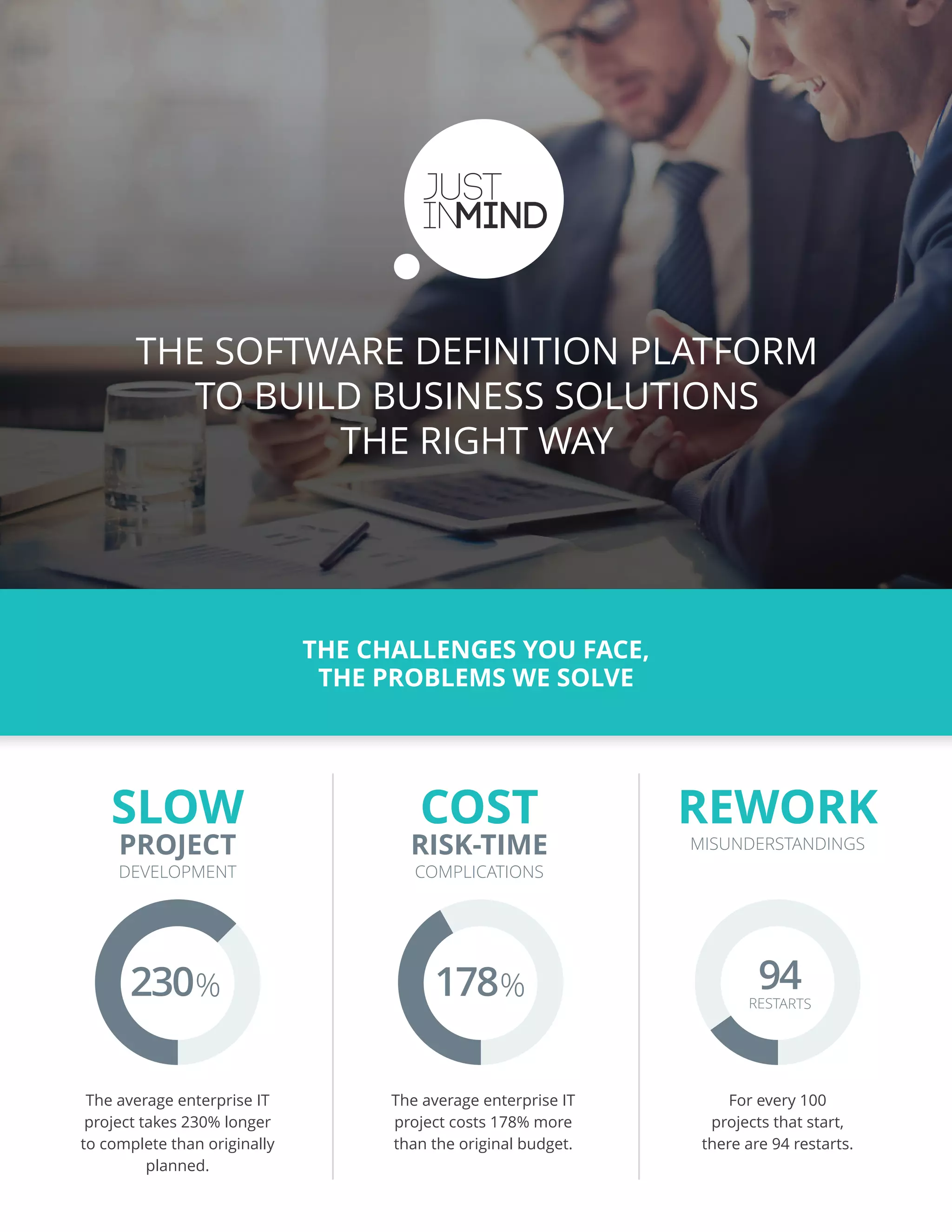 The average enterprise IT project takes 230% longer to complete than originally planned and costs 178% more than the original budget. For every 100 projects that start, there are 94 restarts. Poor requirements are top factors that cause projects to be challenged, impaired or cancelled. Reducing unnecessary risks, rework, and costs by improving requirements and user involvement can reduce time to market by 40% and costs by 20%.