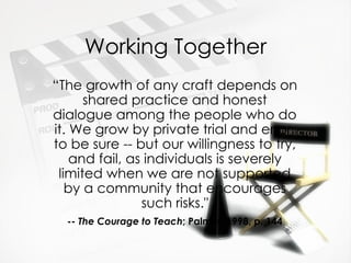 The document provides an overview of co-teaching at Negaunee High School. It discusses the benefits of co-teaching, effective co-teaching models, and how co-teaching is implemented at NHS. Teachers at NHS use a mixture of co-teaching models and work together to support all students in core classes and directed studies. Finding time to plan and balance responsibilities can be challenging but is important for effective co-teaching.