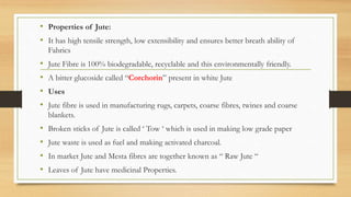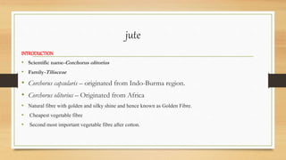 - Jute is a natural fiber that originated from Africa and the Indo-Burma region. It is the second most important vegetable fiber after cotton.