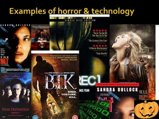 The document provides details about the plot, characters, themes, and techniques used in a horror film trailer, poster, and magazine cover created by the author. It discusses the story of a student who discovers a mysterious website and becomes embroiled in a murder investigation. Key elements include an isolated school setting, themes of good vs evil, and the use of found footage-style filming techniques and fast cuts to create suspense. Feedback was gathered from viewers using online surveys and focus groups. The author learned about designing for different media formats and improving work based on audience response.