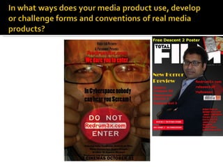 The document describes a teaser trailer created for a horror film called Redrum3X. It provides details on the characters, plot, themes, locations, camera techniques, and conventions used to craft an unsettling tone and suspenseful narrative. The main characters include the hero Tom on a mysterious quest, the villain Death portrayed as the sinister force behind events, and the female character Susan acting as a false hero. Key plot points mirror common horror story structures involving an initial equilibrium disrupted by disturbing events that the characters then attempt to understand and resolve.