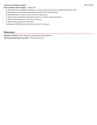 Jeffrey Werner has over 15 years of experience in regional sales leadership and management roles within the pet food and packaging industries. He has a track record of growing sales by 20-35% through strategic account development, new product rollouts, and team leadership. Currently, he is the Eastern US Sales Director for Nature's Variety, overseeing $35 million in annual revenues.